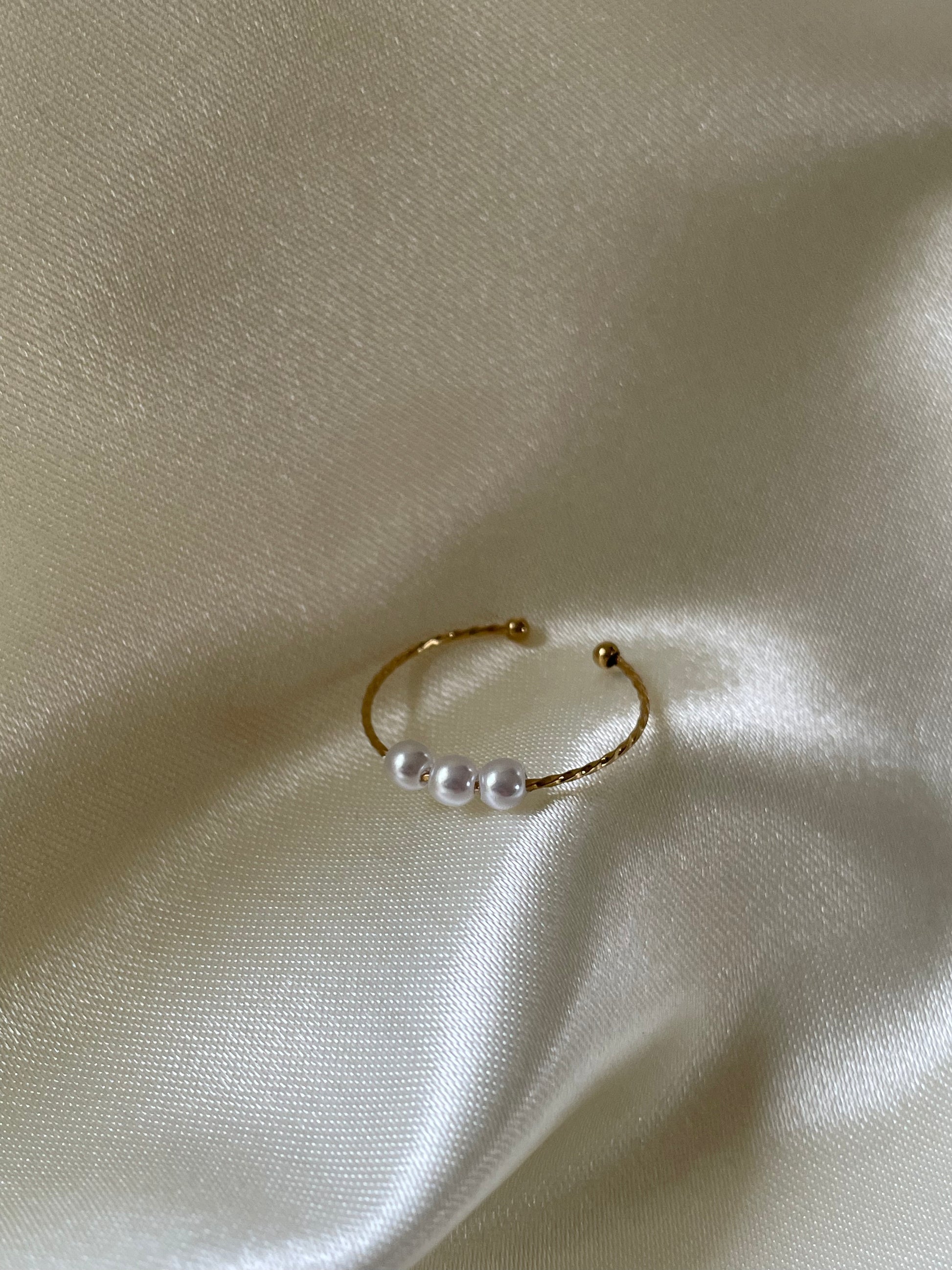 Cette bague Mia est discrète avec ses petites perles sur le dessus.